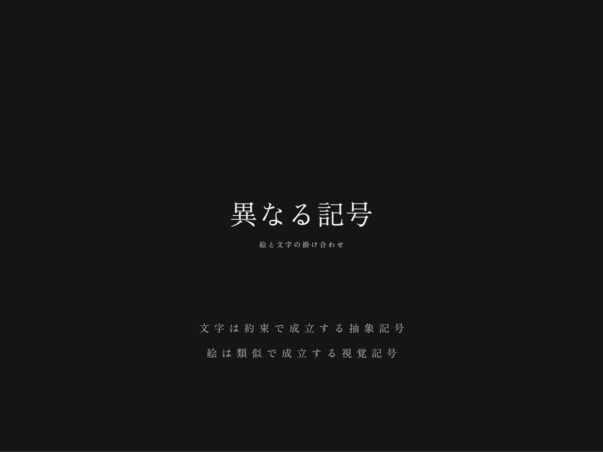 文字は約束で成立する抽象記号であり、絵は類似で成立する視覚記号である。